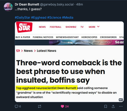 minus-squaretheunknownmuncher@lemmy.worldlinkfedilinkEnglisharrow-up0·4 months ago👍👍 Oh yeah I’ll try this in the next argument with my girlfriend, thanks science