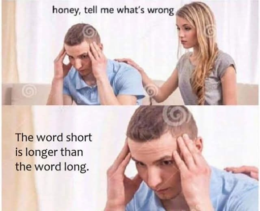 minus-squareMattiz6276@mastodon.unolinkfedilinkarrow-up2·4 days ago@PolandIsAStateOfMind @Normo in Italian the words “Lungo” and “Corto” are the same length.