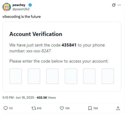 arrow-up11.28Karrow-down1imageVibecoding is the futurelemmy.mlcm0002@sh.itjust.works to Programmer Humor@programming.dev · 7 days agomessage-square81fedilink